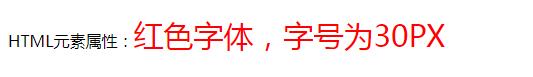 10.         <p>HTML元素屬性:<span style="color:#ff0000;font-size:30px">紅色字體,字號為30PX</span></p>