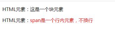 11.         <p>HTML元素:<span style="color: red;">span是一個行內元素,不換行</span></p>
