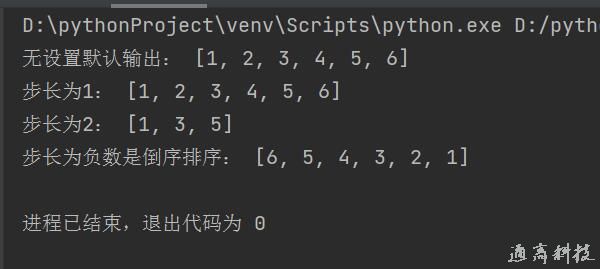 - print('步長(zhǎng)為1:',a[::1])