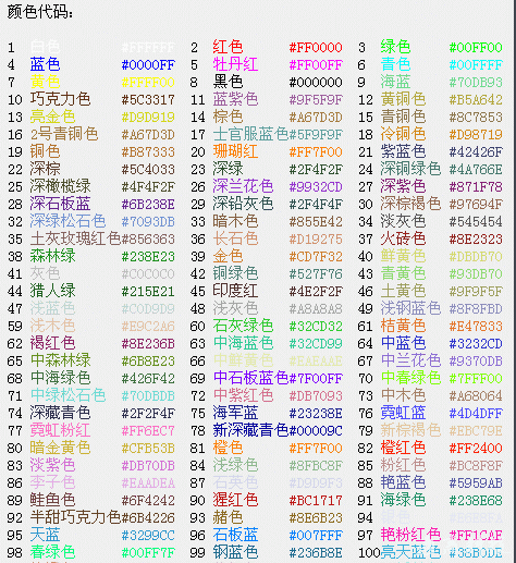 十六進制顏色對照表代碼查詢
